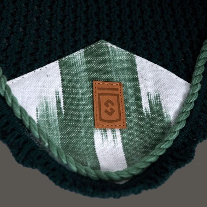 Each piece is carefully sewn by hand, combining high-quality cotton with soft, elastic ear fabric that ensures a comfortable fit for the horse during work or competition. The Ikat detail visually connects with the Deià saddle pad, while the decorative cord adds a contemporary touch to the design.