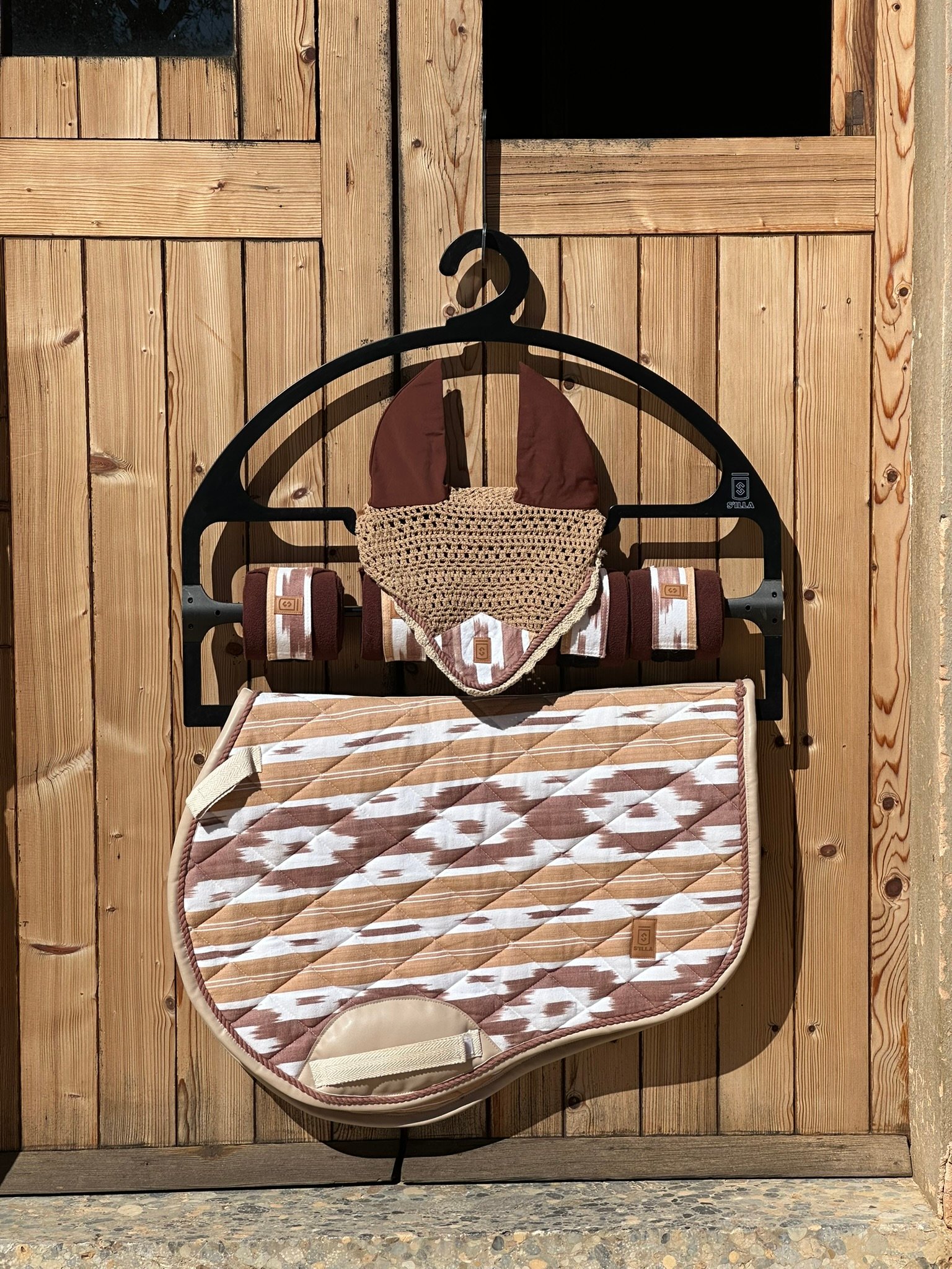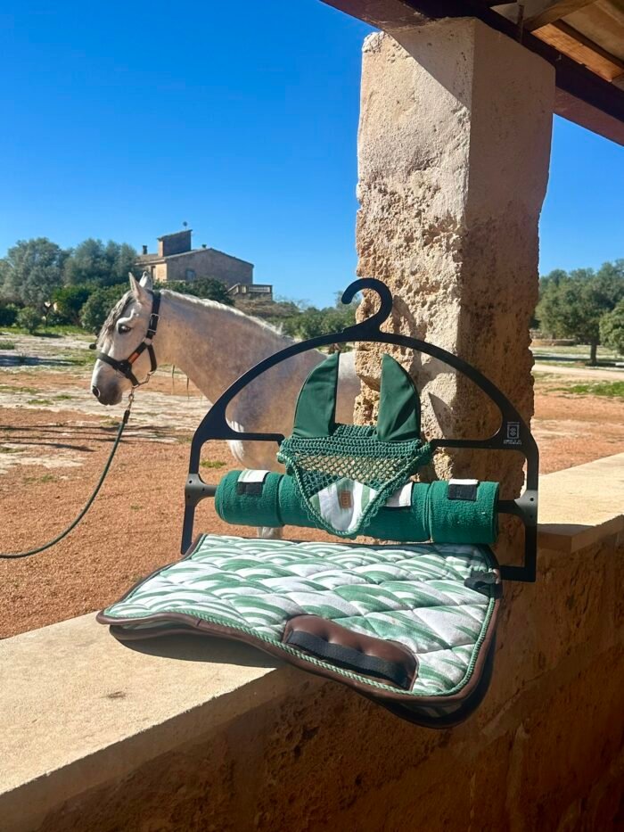 Designed to organise saddle pads, ear bonnets, bandages or boots with balance and clarity, its structure preserves the natural shape of each piece, preventing unnecessary deformation and wear.