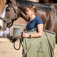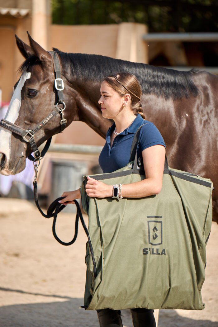 Crafted from high-durability polyester and designed to fold neatly when not in use, Sa Roqueta combines rugged practicality with a refined equestrian aesthetic. Reinforced handles allow it to be easily carried or hung in the stable, the tack room, or the horse lorry.