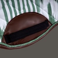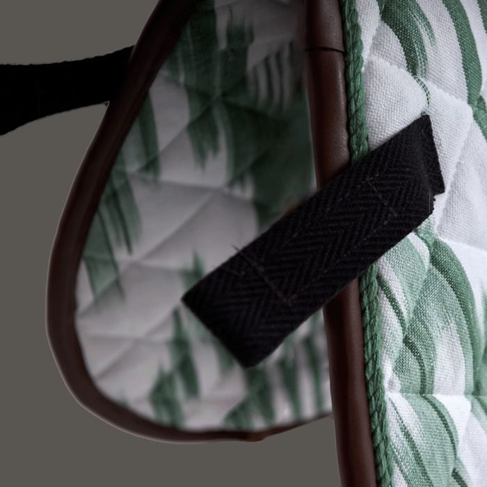 Each saddle pad is entirely handcrafted in Mallorca through an artisanal process that begins with the creation of the Ikat fabric, woven thread by thread from a natural blend of 70% cotton and 30% linen. A patient and meticulous craft that gives every piece its own identity and character.