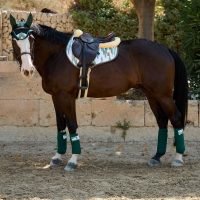 This same deep green, blending the serenity of nature with Mediterranean tradition, inspires the Deià saddle pad, bringing the character of the Mallorcan landscape into the equestrian world.