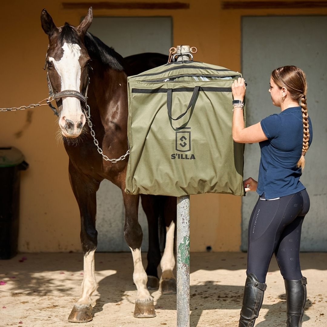 Fabricada en poliéster grueso y plegable sobre sí misma para ahorrar espacio, cuenta con asas resistentes que permiten colgarla cómodamente. Perfecta tanto para tu día a día en la cuadra como para competiciones. Organización y funcionalidad, estés donde estés, vayas donde vayas.